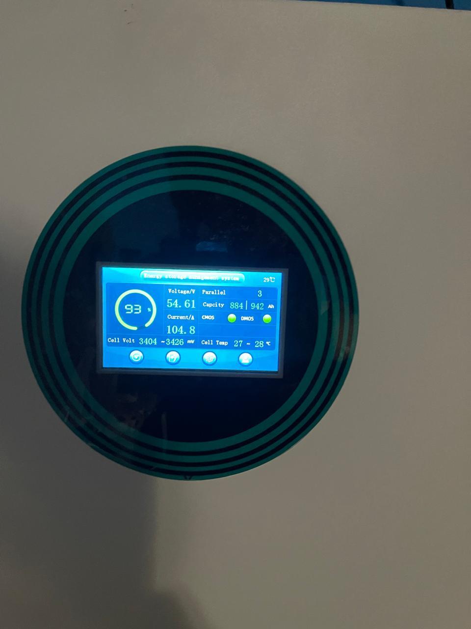 Батареи в параллельном подключении (три батареи в режиме Slave (подчиненный), одна Master (главная), связь: инвертор-батарея (BMS) по RS-485, батарея-батарея RS485.